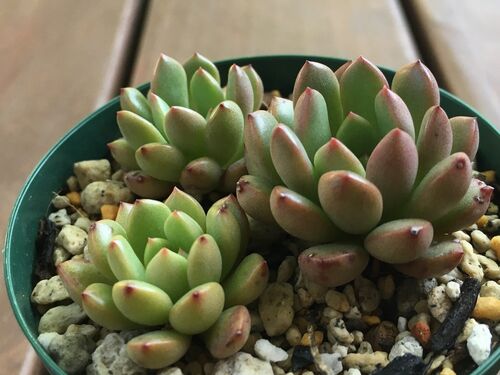グラプトべリア属ピンクルルビーの成長記録です。 2024年 冬(2月) 春(3~5月) 2024年 冬(2月) 2024.2.4 園芸店で6㎝ポットを購入しました。小さいですが芽が5つで180円だったのでお得かなと思い買いました。 2024.2.24 7.5㎝ポットに植え替えをしています。…